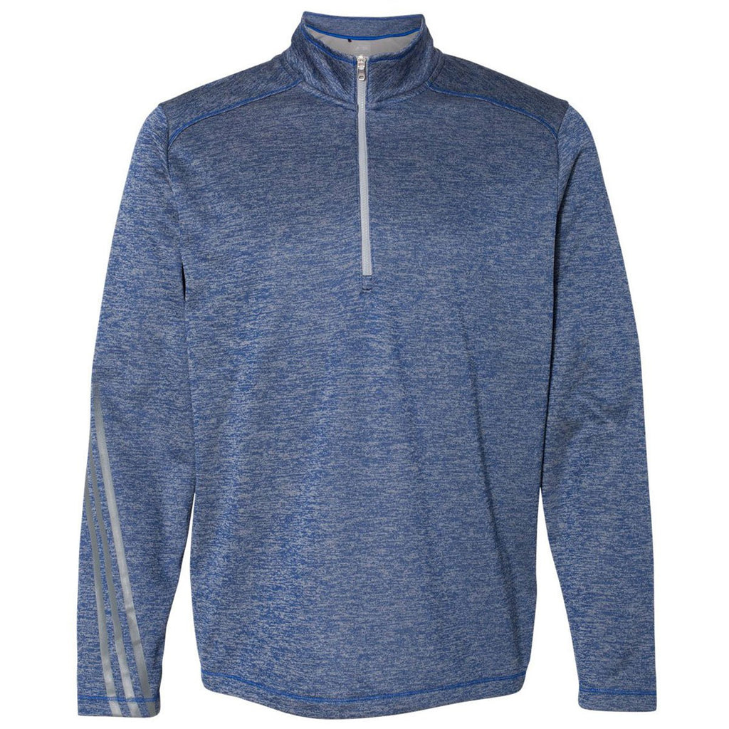As colder weather descends upon us let the Adidas Golf Men's Collegiate Royal Heather/Mid Grey Brushed Terry Heather Quarter-Zip keep you warm and toasty. Made of 100% polyester with reflective gradient 3-stripes on the right forearm and Adidas logo, the brushed terry offers a professional look with a comfortable feel. Great for layering with custom Adidas polo shirts, these quarter-zip pullovers could serve as part of employee apparel or just an added layer at the next trade show. Add your company logo or corporate embroidery for that little extra on the already amazing pullover. Start your design and place an order today. We are waiting to hear from you!Corresponding Women's Style:Adidas Golf Women's Collegiate Royal Heather/Mid Grey Brushed Terry Heather Quarter-Zip