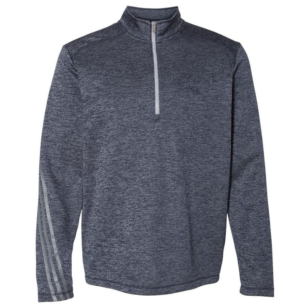 As colder weather descends upon us let the Adidas Golf Men's Navy Heather/Mid Grey Brushed Terry Heather Quarter-Zip keep you warm and toasty. Made of 100% polyester with reflective gradient 3-stripes on the right forearm and Adidas logo, the brushed terry offers a professional look with a comfortable feel. Great for layering with custom Adidas polo shirts, these quarter-zip pullovers could serve as part of employee apparel or just an added layer at the next trade show. Add your company logo or corporate embroidery for that little extra on the already amazing pullover. Start your design and place an order today. We are waiting to hear from you!Corresponding Women's Style:Adidas Golf Women's Navy Heather/Mid Grey Brushed Terry Heather Quarter-Zip