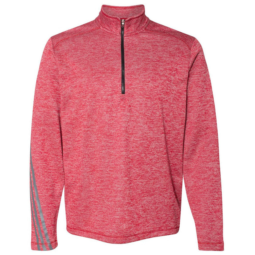 As colder weather descends upon us let the Adidas Golf Men's Power Red Heather/Black Brushed Terry Heather Quarter-Zip keep you warm and toasty. Made of 100% polyester with reflective gradient 3-stripes on the right forearm and Adidas logo, the brushed terry offers a professional look with a comfortable feel. Great for layering with custom Adidas polo shirts, these quarter-zip pullovers could serve as part of employee apparel or just an added layer at the next trade show. Add your company logo or corporate embroidery for that little extra on the already amazing pullover. Start your design and place an order today. We are waiting to hear from you!Highlights