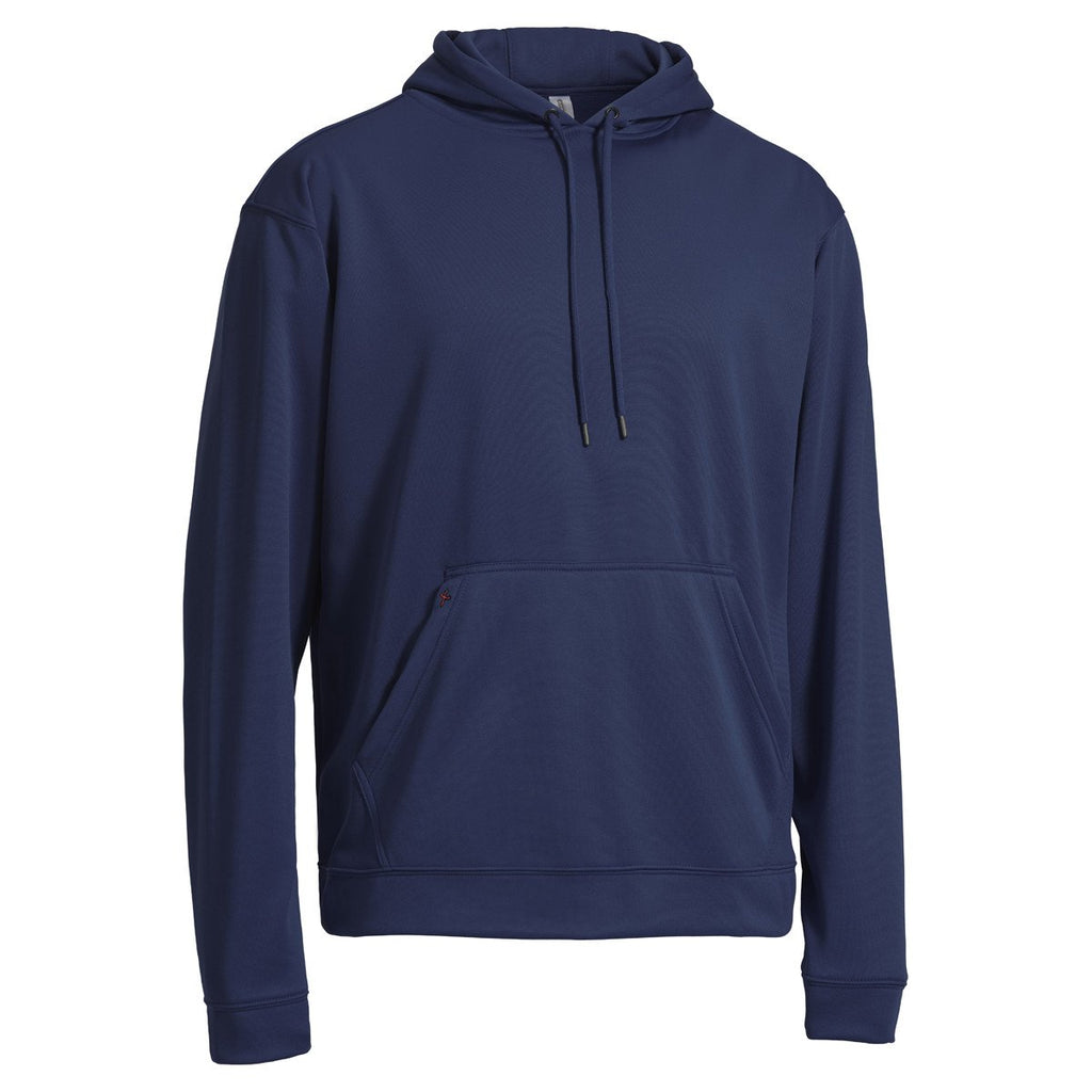 Expert's Expert Men's Navy Tec Hooded Pullover is a performance-driven number made from wind-resistant and moisture-wicking polyester fleece. Other technical features include pouch pocket, self-fabric hood, cuffsand bottom band, matching draw cord and anti-static, anti-microbial build. Add your logo to this men's custom hooded pullover to spread visual representation of your business in a wider world. A perfect item to be used as corporate gift, promotional merchandise or business gifts for men of all ages.Highlights