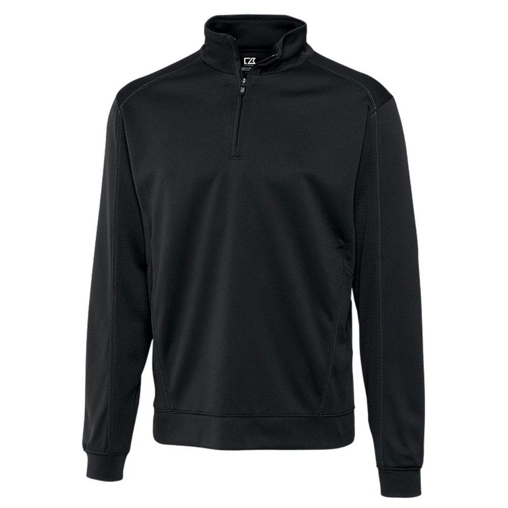 With the addition of your company's custom logo, the Cutter & Buck Men's Solid Black Tall DryTec Edge Half-Zip will make your workers smile. This half-zip is great for use at casual occasions during the fall and winter. The polyester body pairs with a mock collar and a half-zip front for a modern look. Some small grooved accents can be found along the shoulders, sleeves, and sides to establish a comfortable style that allows air to move along. The inside lining is comfortable as well. The design on the half-zip outfit is suitable for many outside needs and does well for golf outings, outdoor recruiting events, and much more.Highlights