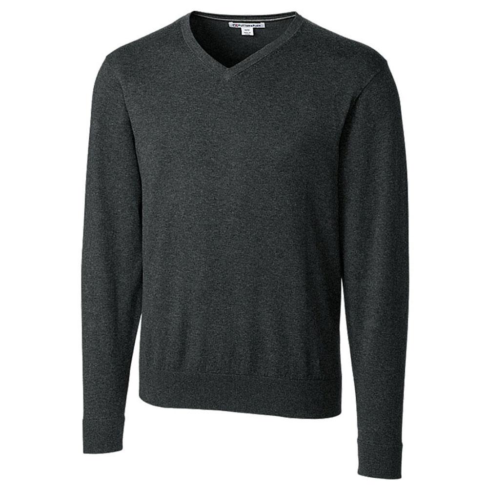 Enjoy the classic surface of the Cutter & Buck Men's Charcoal Heather Tall Lakemont V-Neck. This V-neck is the perfect canvas for your company's custom branding. The outfit is good for casual work wear needs and offers a friendly face during a charity or recruiting event. The flexible cotton and nylon surface with a hint of spandex provides the comfort your employees need for a long day of work. The soft surface on this outfit adds a good style with a flexible body that is not hard to wear or use. Try this when looking for something fashionable to give to employees during the fall or winter seasons.
