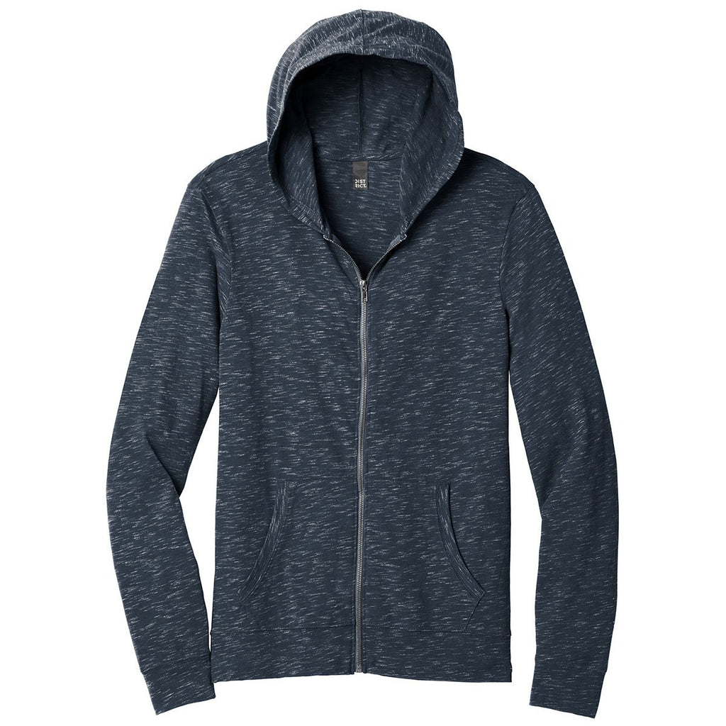 Turn employee appreciation day into a full fledge celebration by handing out the decorated District Men's New Navy Medal Full-Zip Hoodie to the high achieving members of your corporate team. Designed to improve mobility, the hoodie is the right choice for active professionals that spend time working on home improvement projects. Super soft ring spun cotton feels smooth against the skin and a touch of polyester helps the fabric resist rips and tears. Self-fabric hem and cuffs exude panache to make your team stand out for all the right fashion reasons. Attach your company logo to shine the spotlight on your brand.Corresponding Women's Style:District Women's New Navy Medal Full-Zip Hoodie