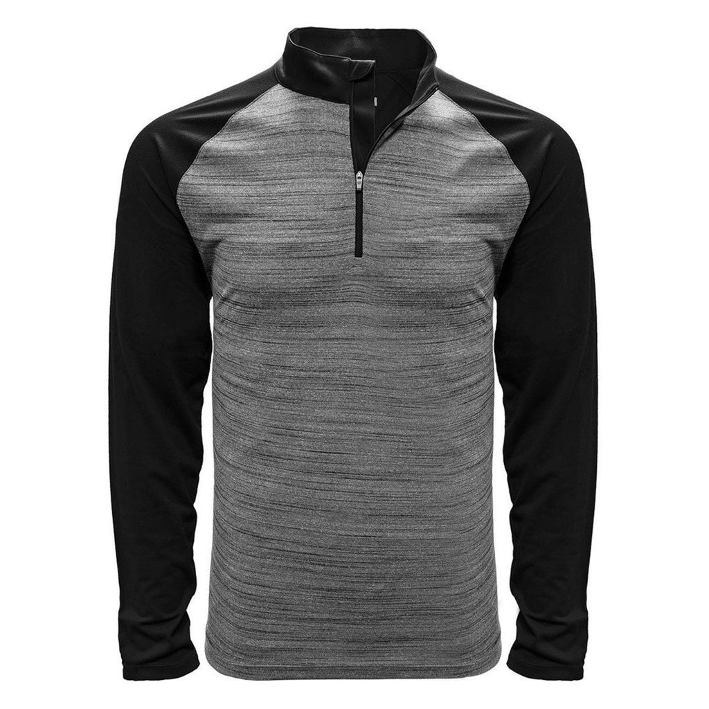 The Levelwear Men's Heather Grey/Black Vandal Quarter Zip is a lightweight piece of activewear golf apparel. The long sleeves are available in various colors to complement the predominant gray color. That gray provides a neutral background if you want the product custom made with your company logo embroidered on the chest, and the Levelwear Men's Heather Grey/Black Vandal Quarter Zip isn't only for golf. Your company can buy a bunch of these and hand them out as employee gifts. It would give your workers another option in their wardrobe if your corporate culture allows for dress-down days or casual outdoor company events.Highlights