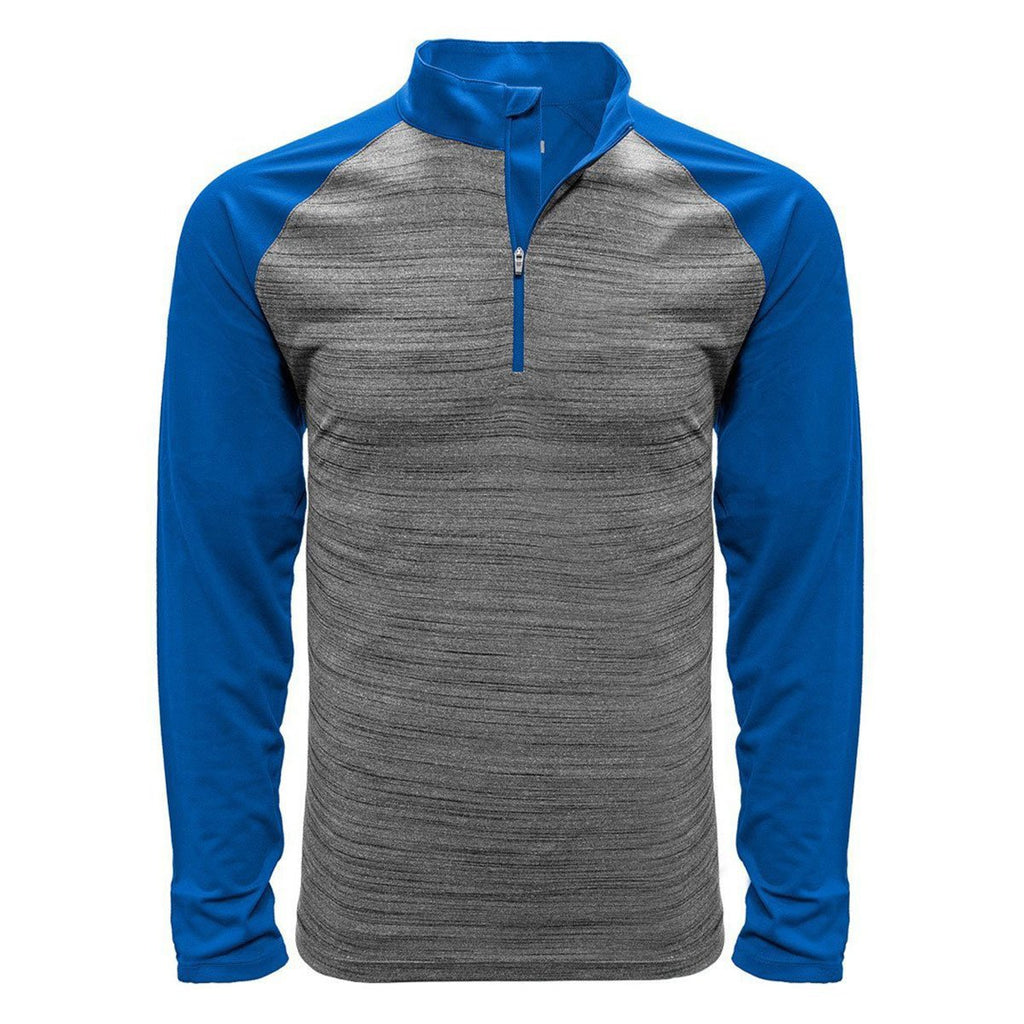 The Levelwear Men's Heather Grey/Royal Vandal Quarter Zip is a lightweight piece of activewear golf apparel. The long sleeves are available in various colors to complement the predominant gray color. That gray provides a neutral background if you want the product custom made with your company logo embroidered on the chest, and the Levelwear Men's Heather Grey/Royal Vandal Quarter Zip isn't only for golf. Your company can buy a bunch of these and hand them out as employee gifts. It would give your workers another option in their wardrobe if your corporate culture allows for dress-down days or casual outdoor company events.Highlights