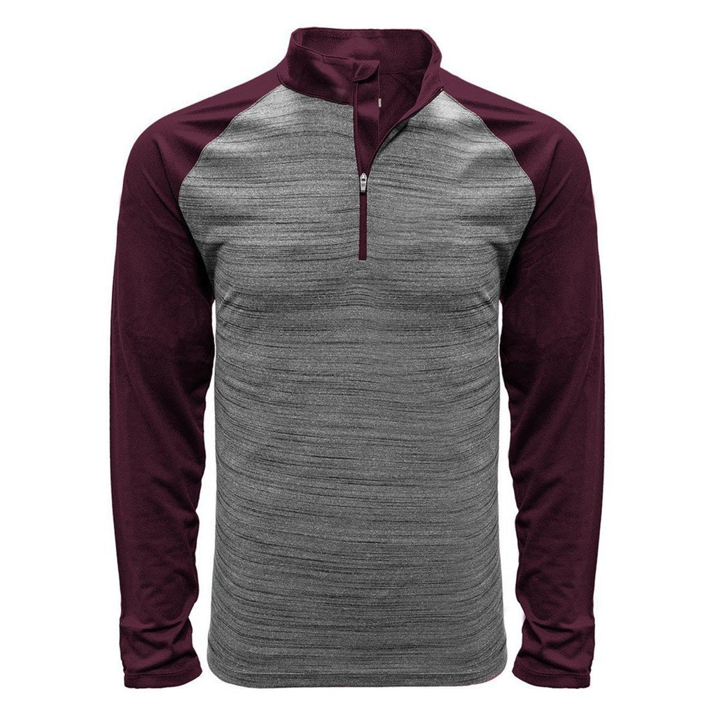 The Levelwear Men's Heather Grey/Maroon Vandal Quarter Zip is a lightweight piece of activewear golf apparel. The long sleeves are available in various colors to complement the predominant gray color. That gray provides a neutral background if you want the product custom made with your company logo embroidered on the chest, and the Levelwear Men's Heather Grey/Maroon Vandal Quarter Zip isn't only for golf. Your company can buy a bunch of these and hand them out as employee gifts. It would give your workers another option in their wardrobe if your corporate culture allows for dress-down days or casual outdoor company events.Highlights