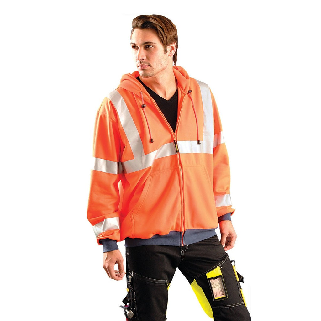 From pullover to full zip sweatshirts, OccuNomix Men's Orange Premium Wicking Hoodie Sweatshirt includes safety features that protect you on construction sites. Most of the sweatshirts manufacturered by OccuNomix Men's Orange Premium Wicking Hoodie Sweatshirt come in bright colors that contain wide reflective tape. The reflective tape also alerts people to your presence walking or cycling along side roads. Lightweight cotton blended material includes moisture wicking properties to prevent perspiration from building on your skin. At least one pocket allows you to store important work-related tools. Attach a custom logo on the layering sweatshirts to increase awareness of your company on the job. Logoed corporate apparel offers you an affordable way to reach more customer prospects.Highlights