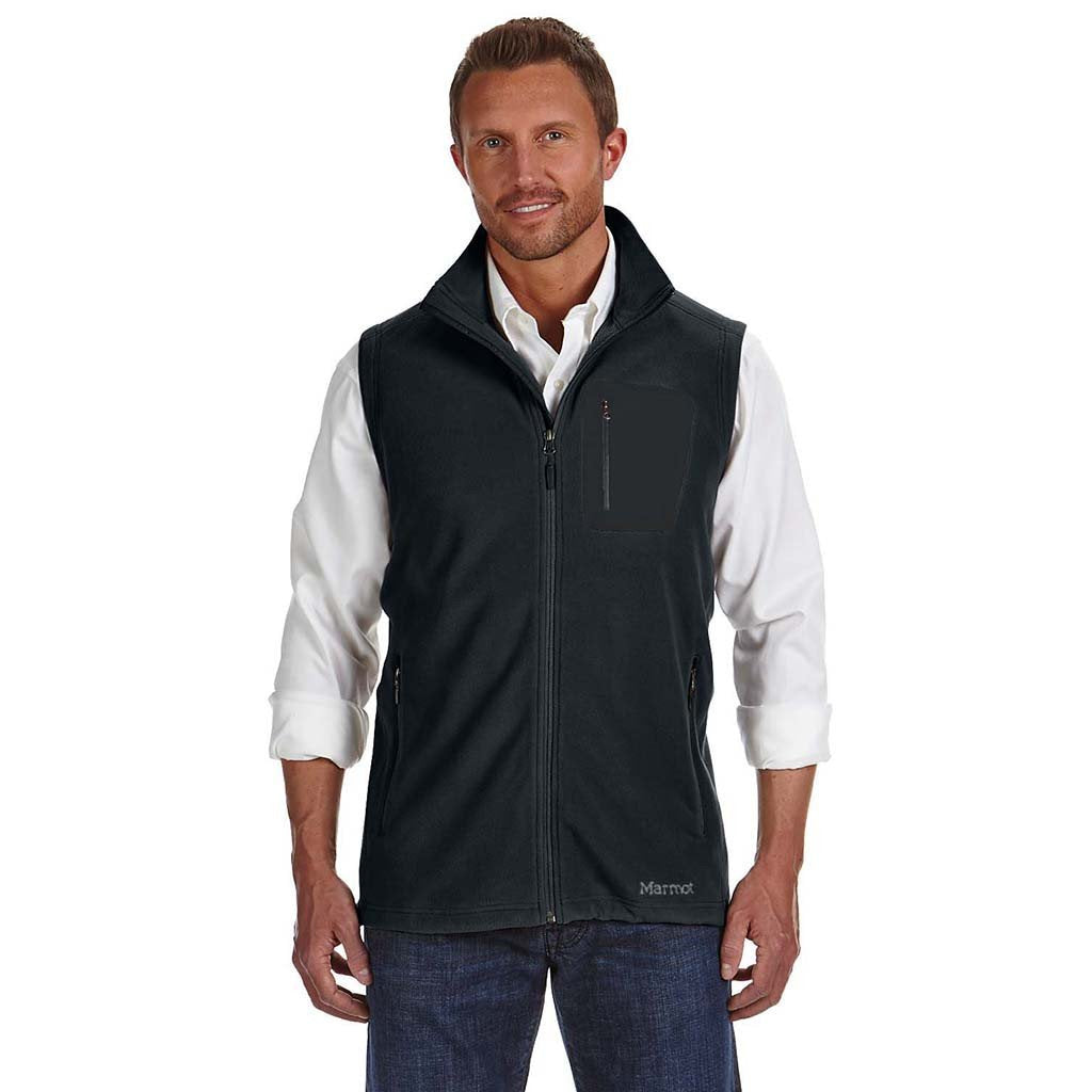 If you want a vest that screams functionality,then you've found it. The Marmot Men's Black Reactor Vest features a bonded, zippered chest pocket on the front that calls attention to itself, making it the perfect canvas for your company's logo. What's more, this vest is ready for action, with a breathable 100% polyester microfleece that doesn't stifle the shirt you're wearing underneath. It's also warm enough for cooler months, thanks to an elastic drawcord hem for locking in the heat and a wind flap behind the front zipper to ensure that it doesn't get too stuffy. But it's hard to ignore that standout bonded pocket, making functionality the centerpiece of this vest.Corresponding Women's Style: Marmot Women's Black Flashpoint Vest