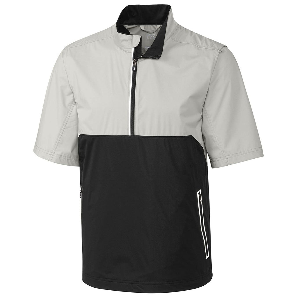 The logoed Cutter & Buck Men's Concrete/Black Fairway Short Sleeve Half Zip is one of many Cutter Buck shirts which the wearer is sure to love. Available in six different attractive colors, this half zip short sleeve shirt is perfect for the golf course or as weekend wear. The 100% polyester CB Weathertec design offers comfort and utility in one. Other features of this Cutter Buck apparel item include a two-and-a-half layer water resistant fabric, waterproof breathable material, mock neck, half zip style, reflective bonded zippered pockets, vented back, adjustable drawcord hem, and CB pennant embroidery logo on the center back collar. Add your corporate logo and this half zip shirt makes the perfect employee apparel gift for your hardworking team members.Highlights