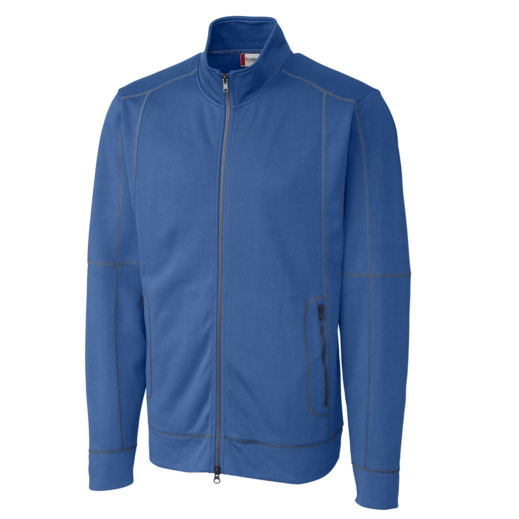 Wear the custom logoed Clique Men's Sea Blue Helsa Full Zip on the golf course or to a social gathering held by one of your close friends. The chic full zip jacket keeps up with the most active professionals. Rip and tear resistant bonded polyester fleece gives you go to company apparel for years to come. Cover stitch framed zippered pockets offer plenty of room to store your Smartphone and business accessories. Add your company logo on the large embroidery area to spread the good word about your products and services. With a specially designed custom logo, you separate your brand from the competition.
