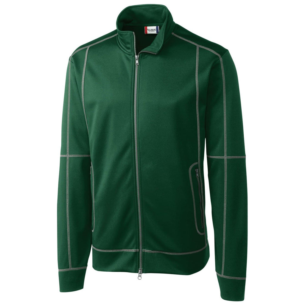 Wear the custom logoed Clique Men's Bottle Green Helsa Full Zip on the golf course or to a social gathering held by one of your close friends. The chic full zip jacket keeps up with the most active professionals. Rip and tear resistant bonded polyester fleece gives you go to company apparel for years to come. Cover stitch framed zippered pockets offer plenty of room to store your Smartphone and business accessories. Add your company logo on the large embroidery area to spread the good word about your products and services. With a specially designed custom logo, you separate your brand from the competition.Corresponding Women's Style:Clique Women's Bottle Green Helsa Full Zip