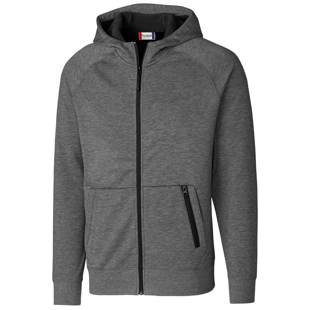 As a company apparel gift that never stops giving, the corporate logoed Clique Men's Charcoal Lund Fleece Zip Hoodie has contrast trim details that pair well with the solid colored design. Rib hem, cuffs, and sleeves present a refined look that will receive praise from the people you pass by at crowded airport concourses. Turn the fashion praise into sales by attaching a custom logo on the large embroidery area. The self-fabric hood adjusts to achieve the most comfortable fit. Raglan sleeves enhance arm movements to make the hoodie ideal for wearing when you perform strenuous home improvement projects.Corresponding Women's Style:Clique Women's Charcoal Lund Fleece Zip Hoodie