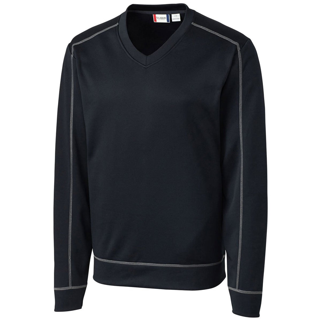 For sleek company apparel that makes the ultimate gift to hand out at corporate sponsored golf tournaments, order the logoed Clique Men's Dark Navy Helsa V-Neck. The smooth faced fleece contains 100% polyester to give you a go to jacket that delivers incredible performance for years to come. Cover stitched framed zippered pockets store electronic devices to keep you connected with professional peers. Add a custom logo on the large embroidery area for connecting with potential customers in the field. Full zip action allows you to put on or take off the jacket quickly to accommodate weather changes.