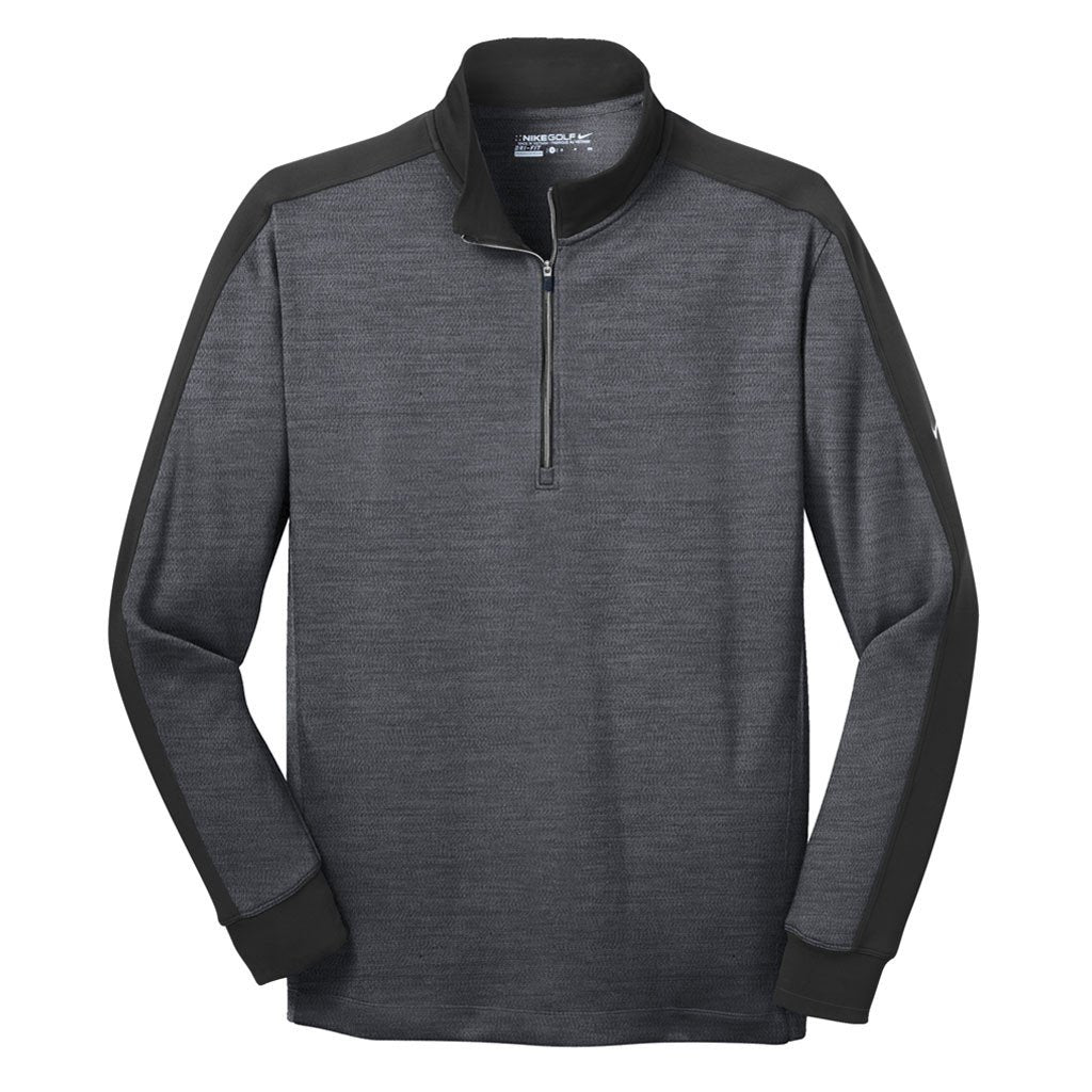 If you want a modern look without sacrificing any form or function, the Nike Men's Anthracite Heather/Black Dri-FIT Long Sleeve Quarter Zip Shirt is exactly what you need. The Nike Golf Dri-FIT Anthracite Heather/Black Quarter Zip Shirt has moisture wicking technology, a striped inner collar and reverse coil zipper and there is also a contrast Swoosh design trademark on the left sleeve to finish off the look. Available in some of the bold, stylish colors Nike Golf is known for, you won't have any trouble getting your employees or co-workers to wear this one!Corresponding Women's Style:Nike Women's Anthracite Heather/ Black Dri-FIT Long Sleeve Quarter Zip Shirt