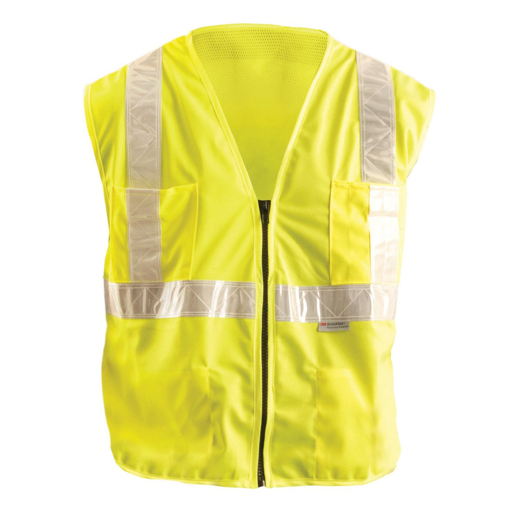 If you work outside at night, you need to wear a safety vest that alerts motorists of your presence. OccuNomix designs and manufactures a line of safety vests that include two-inch wide high visibility reflective tape that motorists can see from several hundred feet away. Large openings allow you to wear the OccuNomix Men's Yellow High Visibility Premium Mesh/Solid Gloss Safety Vest over heavy jackets during cold weather work projects. OccuNomix adds several easy to access pockets for storing important work-related tools, such as a tape measurer or a Phillips screwdriver. Highly breathable mesh keeps you comfortable on hot, humid summer days.The minimum order for this product is 12 pieces.