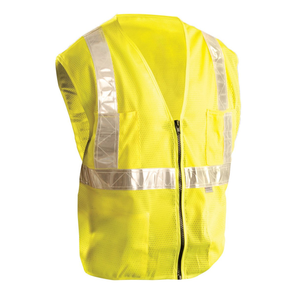 If you work outside at night, you need to wear a safety vest that alerts motorists of your presence. OccuNomix designs and manufactures a line of safety vests that include two-inch wide high visibility reflective tape that motorists can see from several hundred feet away. Large openings allow you to wear the OccuNomix Men's Yellow High Visibility Premium Mesh Gloss Safety Vest over heavy jackets during cold weather work projects. OccuNomix adds several easy to access pockets for storing important work-related tools, such as a tape measurer or a Phillips screwdriver. Highly breathable mesh keeps you comfortable on hot, humid summer days.The minimum order for this product is 12 pieces.