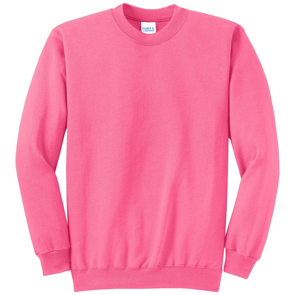 Port & Company Men's Neon Pink Core Fleece Crewneck Sweatshirt