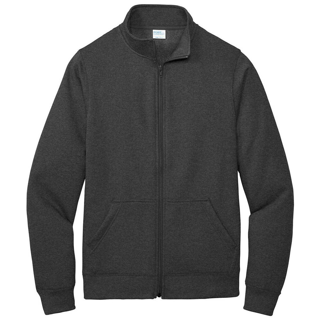 Stay warm and comfortable in a custom embroidered Port & Company Men's Dark Heather Grey Core Fleece Cadet Full-Zip Sweatshirt. Made of a cozy 50/50 cotton/poly fleece, this full zip sweatshirt is great for hanging out around the campfire or heading to a team event. Add a custom logo to support a specific team or player. The air jet yarn offers both softness and a pill-resistant finish when the sweatshirt needs washed or cleaned. Perfect as an employee gift with a company logo as all will enjoy the warmth and comfort provided by this sweatshirt. Easy to layer over a tee shirt or sweater, this is a must have for nearly every wardrobe.Highlights