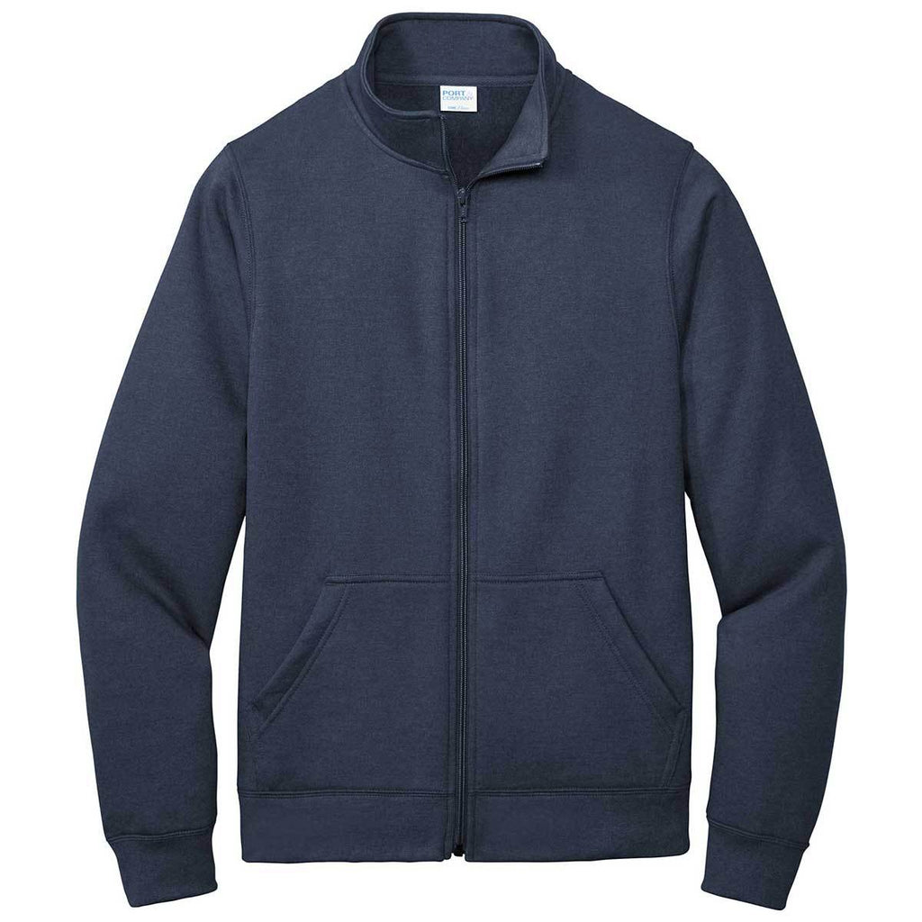 Stay warm and comfortable in a custom embroidered Port & Company Men's Navy Core Fleece Cadet Full-Zip Sweatshirt. Made of a cozy 50/50 cotton/poly fleece, this full zip sweatshirt is great for hanging out around the campfire or heading to a team event. Add a custom logo to support a specific team or player. The air jet yarn offers both softness and a pill-resistant finish when the sweatshirt needs washed or cleaned. Perfect as an employee gift with a company logo as all will enjoy the warmth and comfort provided by this sweatshirt. Easy to layer over a tee shirt or sweater, this is a must have for nearly every wardrobe.Highlights