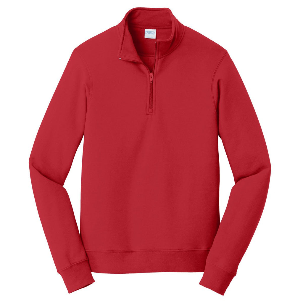 Welcome the new members of your team by giving away corporate apparel that is perfect for embroidery, the Port & Company Men's Bright Red Fan Favorite Fleece 1/4-Zip Pullover Sweatshirt. Your new team members will love wearing the stylish pullover sweatshirt to attend college and professional sporting events. Add your company logo on the large imprint area to associate your brand with high quality products and services. The ring spun cotton and polyester sweatshirt resists the types of rips and tears that ruin other styles of outerwear. Pull up the twill-taped neck whenever the air begins to take on a bit of a chill.Highlights