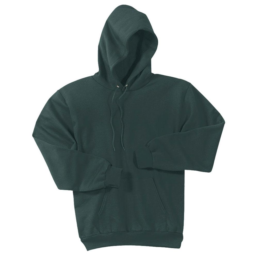 The time has come to relax after a long day at work and no other recreational apparel allows you to kick back with more style than the custom logoed Port & Company Men's Dark Green Tall Essential Fleece Pullover Hooded Sweatshirt. Designed with a two-ply hood, the sweatshirt is the ultimate outerwear to take along on camping trips and outdoor adventures. The air jet yarn produces a soft, pill-resistant finish to ensure you remain comfortable throughout the day. Highly durable polyester combines with smooth cotton to withstand the punishment delivered by your active lifestyle. Attach your company logo to increase recognition of your brand at business conferences.Highlights