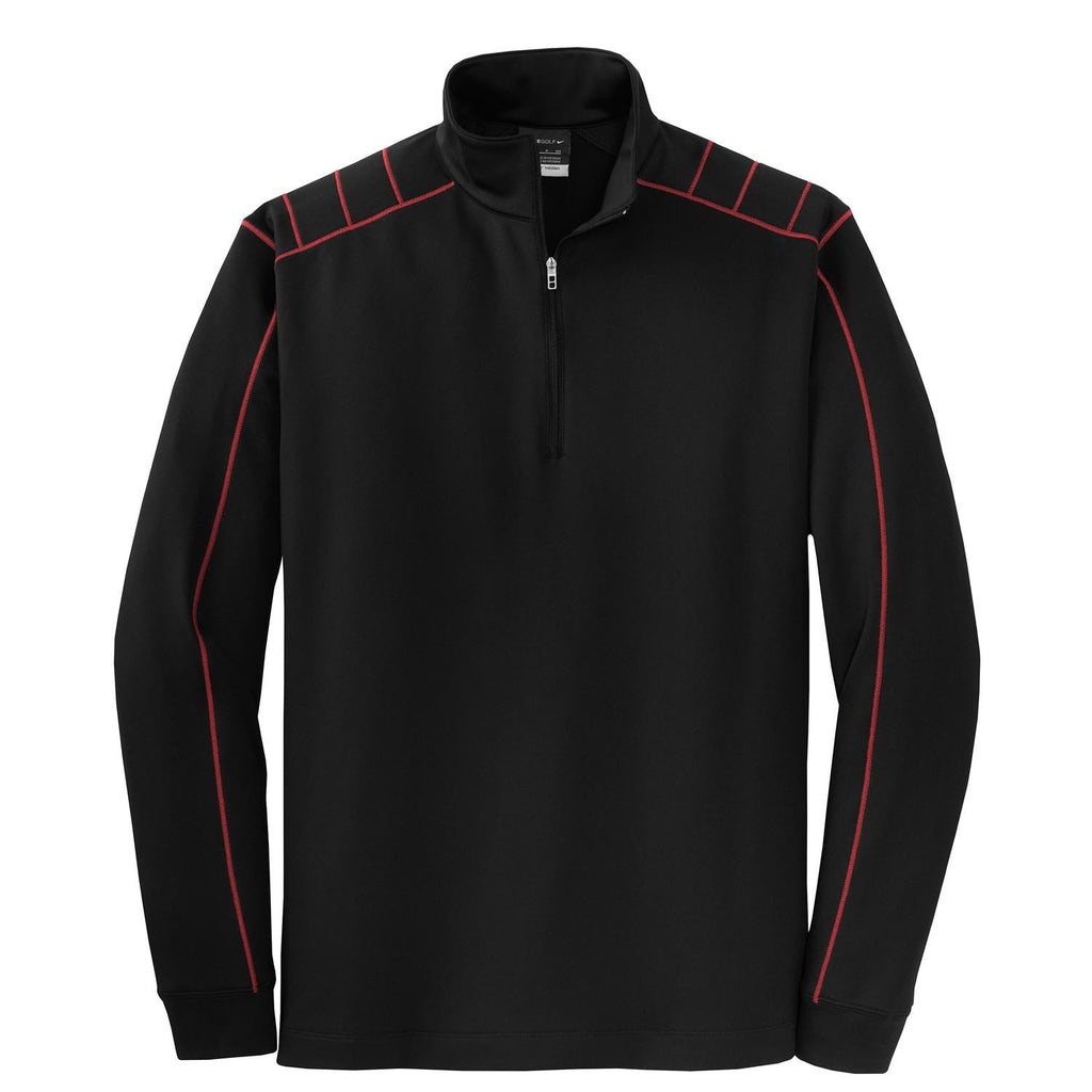 For the man who loves versatile designs that are modern and streamlined, the Nike Men's Black/Red Dri-FIT Long Sleeve Quarter Zip is about as good as it gets. Features of the Nike Golf Dri-FIT Black/Red Quarter Zip include Nike Golf's signature Dri-FIT moisture management technology, contrast stitching, self-fabric collar, open cuffs and a trademark Swoosh design on the back neck. Available in some great colors that can be mixed and matched to find the perfect combination for your office or event.Highlights