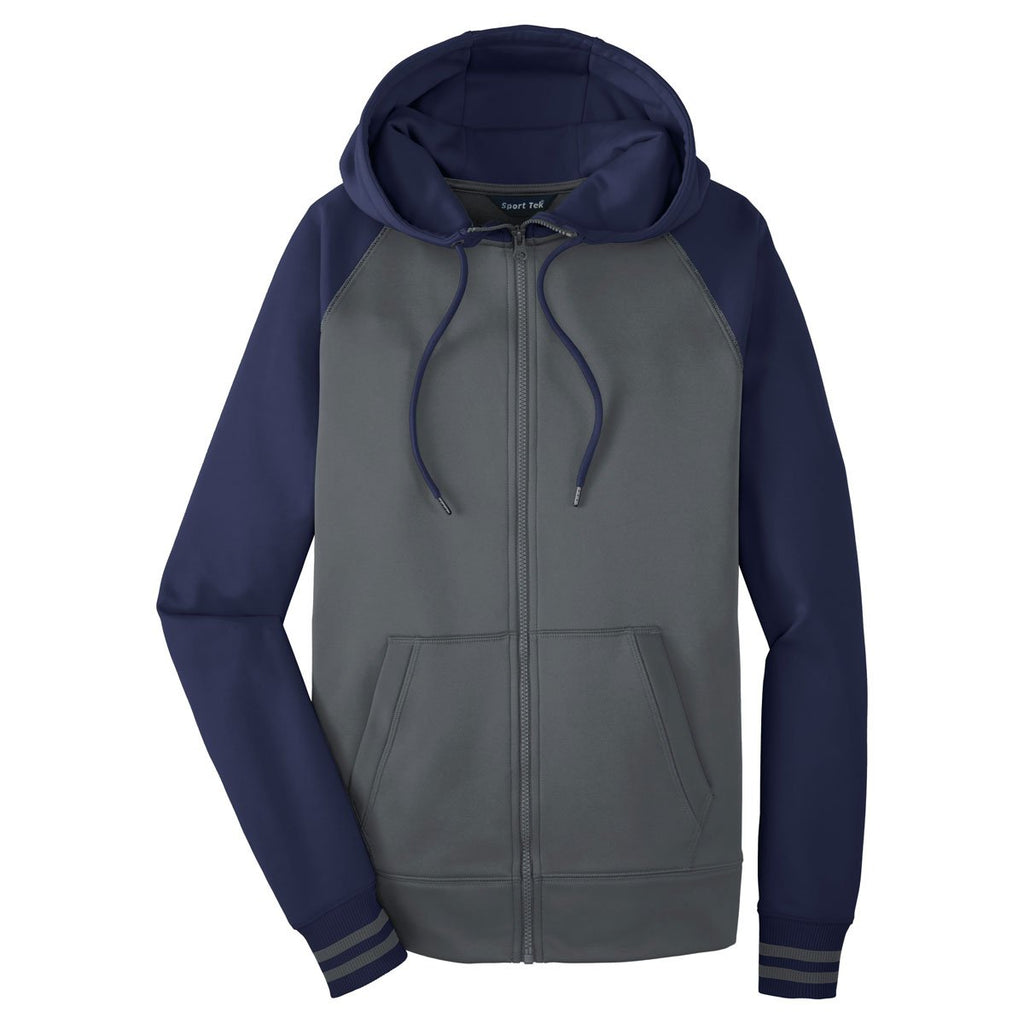 Sport-Tek Men's Dark Smoke Grey/ Navy Sport-Wick Varsity Fleece Full-Zip Hooded Jacket