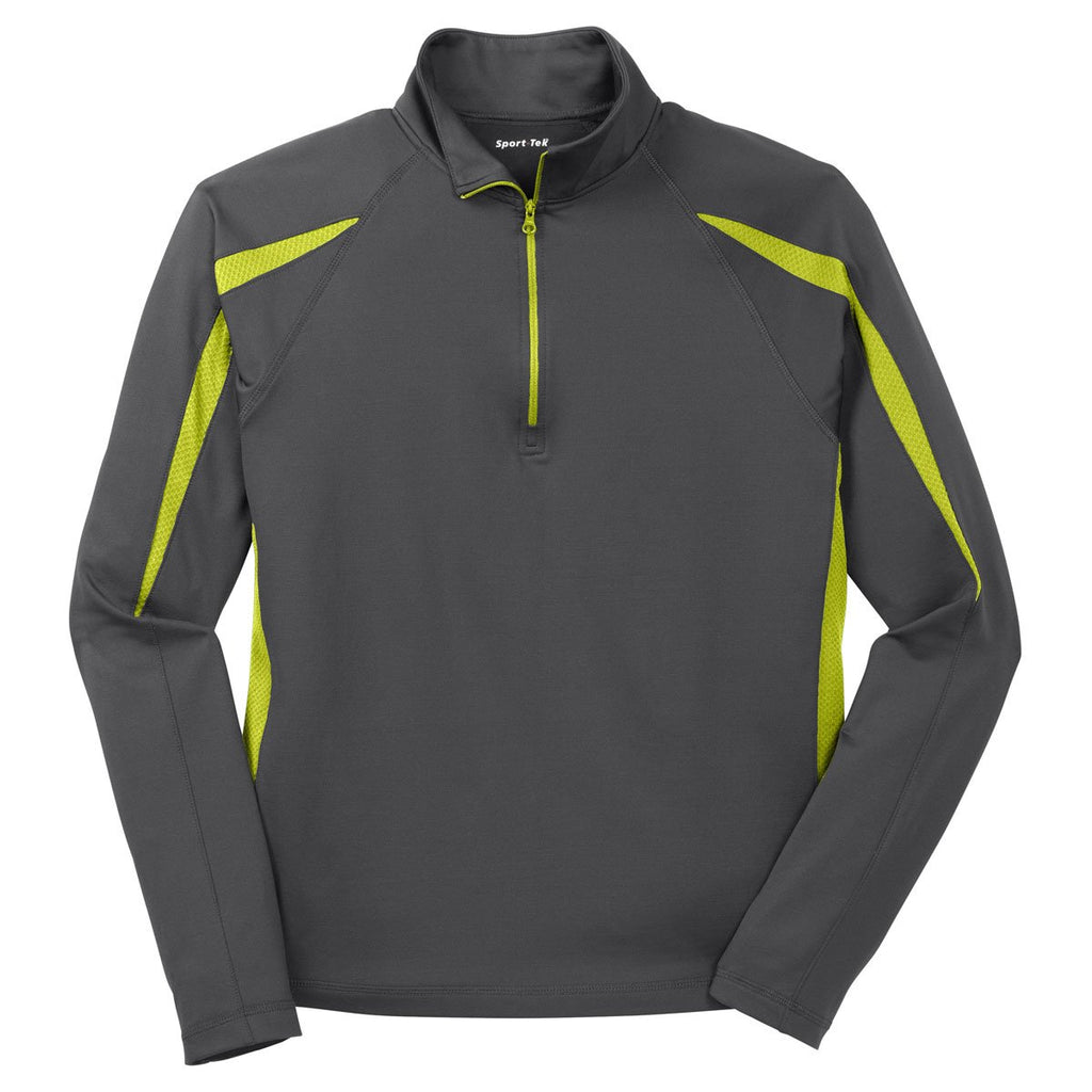 When the weather gets tough, so must you. That's the idea behind this Sport-Tek Men's Charcoal Grey/ Charge Green Sport-Wick Stretch 1/2-Zip Colorblock Pullover. Add your own custom embroidery to make this a piece of corporate apparel that anyone can enjoy. Layering is ideally suited to serve as your canvas, and this is an item that will work for you in the elements, not against.Highlights