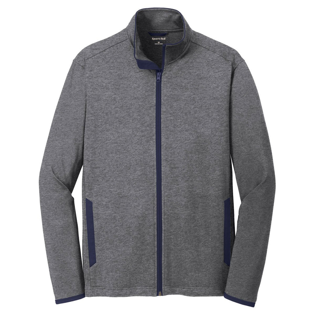 Sport-Tek Men's Charcoal Grey Heather/ True Navy Sport-Wick Stretch Contrast Full-Zip Jacket