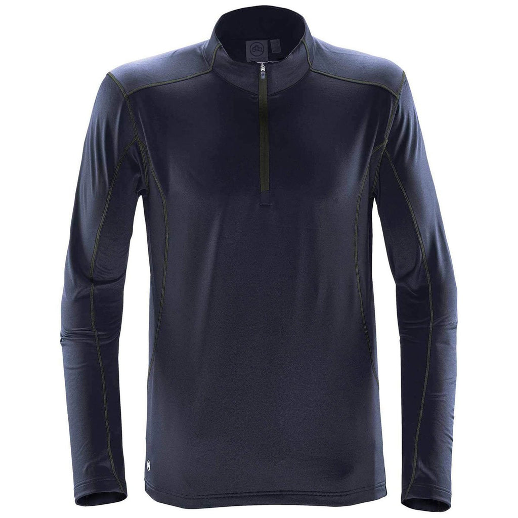 A streamlined design makes the company logoed Stormtech Men's Navy/Carbon Pulse Fleece Pullover the ultimate base layer for active professionals. Proprietary moisture wicking technology ensures your body remains comfortably dry and cool on the most humid days of the year. The technology also helps regulate your body temperature to account for wild weather swings. Attach a logo on the large embroidery area for getting more potential customers to recognize your company. The one-quarter zip pullover contours nicely to most body shapes. Rip and tear resistant fabric withstand the rigors of daily use to give active professionals a go to pullover.Highlights