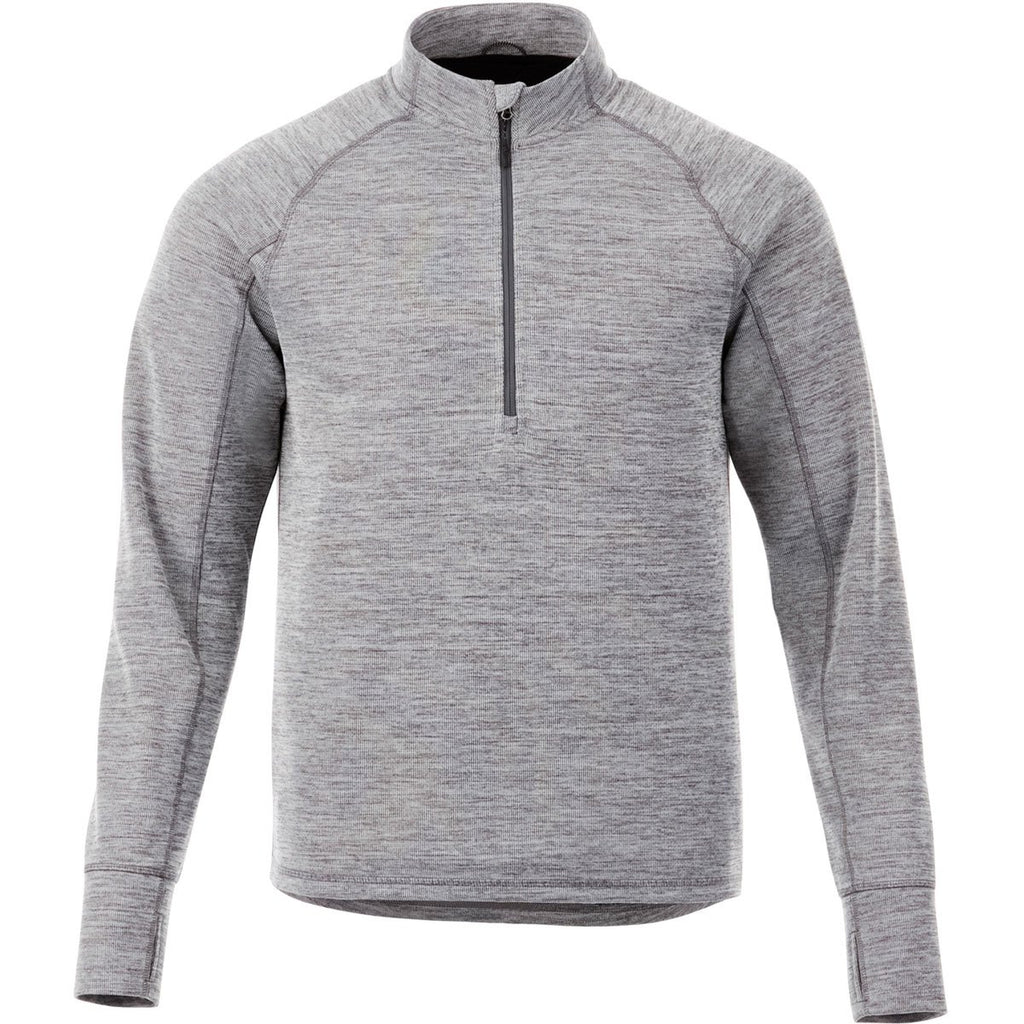 Elevate Men's Heather Charcoal Crane Knit Half Zip is on point to hit the woods for a hike, take an early morning run, or enjoy a casual meeting with new clients, even if cold weather is in full force. Business casual has hit a new high with the 100% polyester double-knit sweater in maroon heather, invictus heather, heather charcoal, or black. Add your custom logo and offer this half zip knit as a corporate gift or employee apparel for those who need to look their best. The snag resistant, moisture wicking finish is great for team building activities happening outdoors with sleeve cuffs and thumb exits for added warmth. Once removed the knit can be easily hung with the hanger loop.Corresponding Women's Style:Elevate Women's Heather Charcoal Crane Knit Half Zip