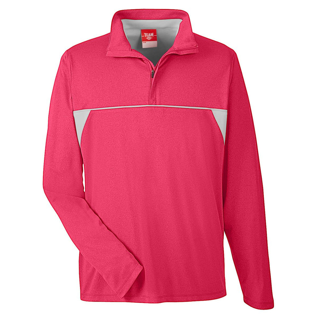 Team 365 Men's Sport Red Heather Excel Melange Interlock Performance Quarter-zip Top
