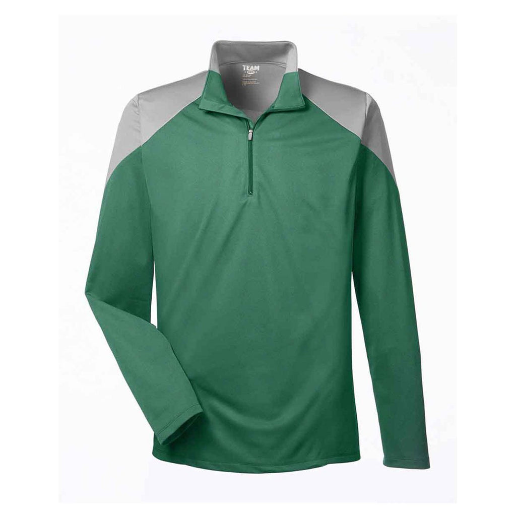 Team 365 Men's Sport Dark Green/Sport Graphite Command Colorblock Snag-Protection Quarter-Zip