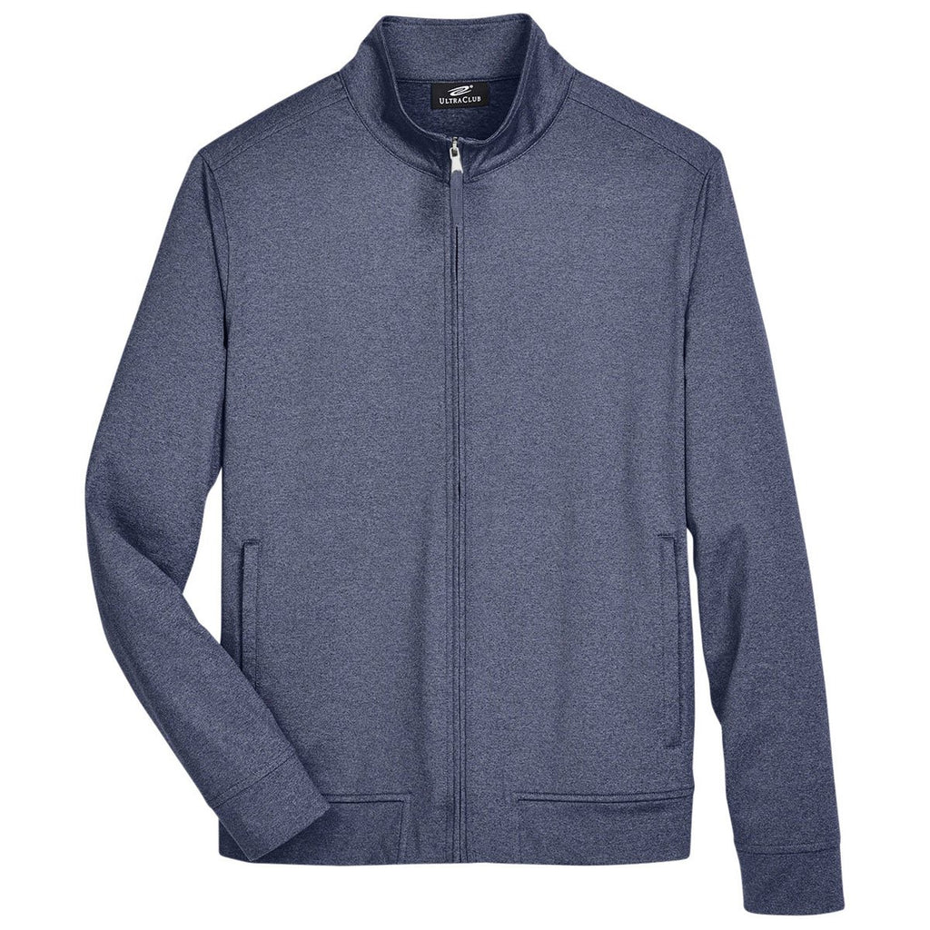 UltraClub Men's Navy Heather Navigator Heather Performance Full-Zip