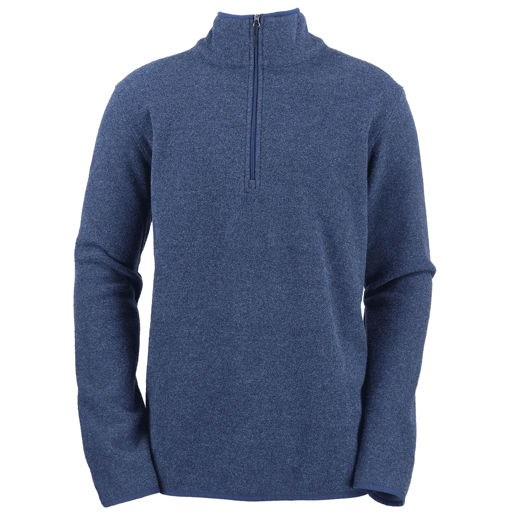 Introducing the Men's Navy Chilly Fleece Quarter Zip from Zusa, your new favorite business casual layering option for men. These custom quarter zips are made from high-tech fabric that's stretchy, warm, comfortable, and sustainable. The brushed fleece interior makes it so comfy you'll want to take a nap in it. You don't need to tell your boss that part. Each quarter zip is actually made using 4 recycled plastic water bottles. All that's missing now is your custom embroidered company logo!Watch this video to learn more about the Zusa Chilly Fleece Quarter Zip