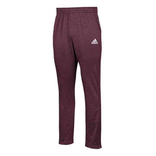 Surprise the loyal patrons of your business on customer appreciation day by giving away the custom logoed adidas Men's Maroon Melange Team Issue Pant. Highly durable 100% polyester resists the types of rips and tears that send other types of recreational pants to the rag pile. Attach your corporate logo on the large imprint area to expand awareness of your company at the next civic event. Adjust the draw cord around the elastic waist to achieve the optimal fit. The tapered leg creates a fashionable appearance for a pair of pants that produce a regular fit.Highlights