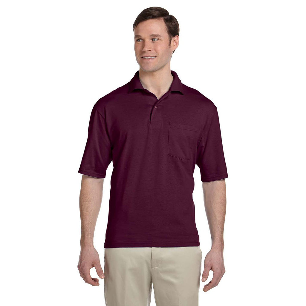 Jerzees Men's Maroon 5.6 Oz Spotshield Pocket Jersey Polo