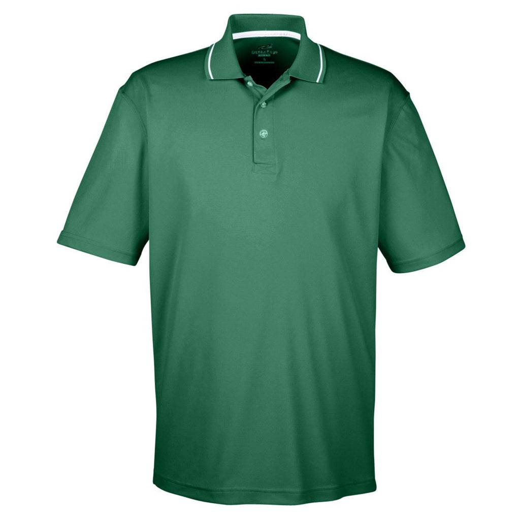 UltraClub Men's Forest Green/White Cool & Dry Sport Two-Tone Polo