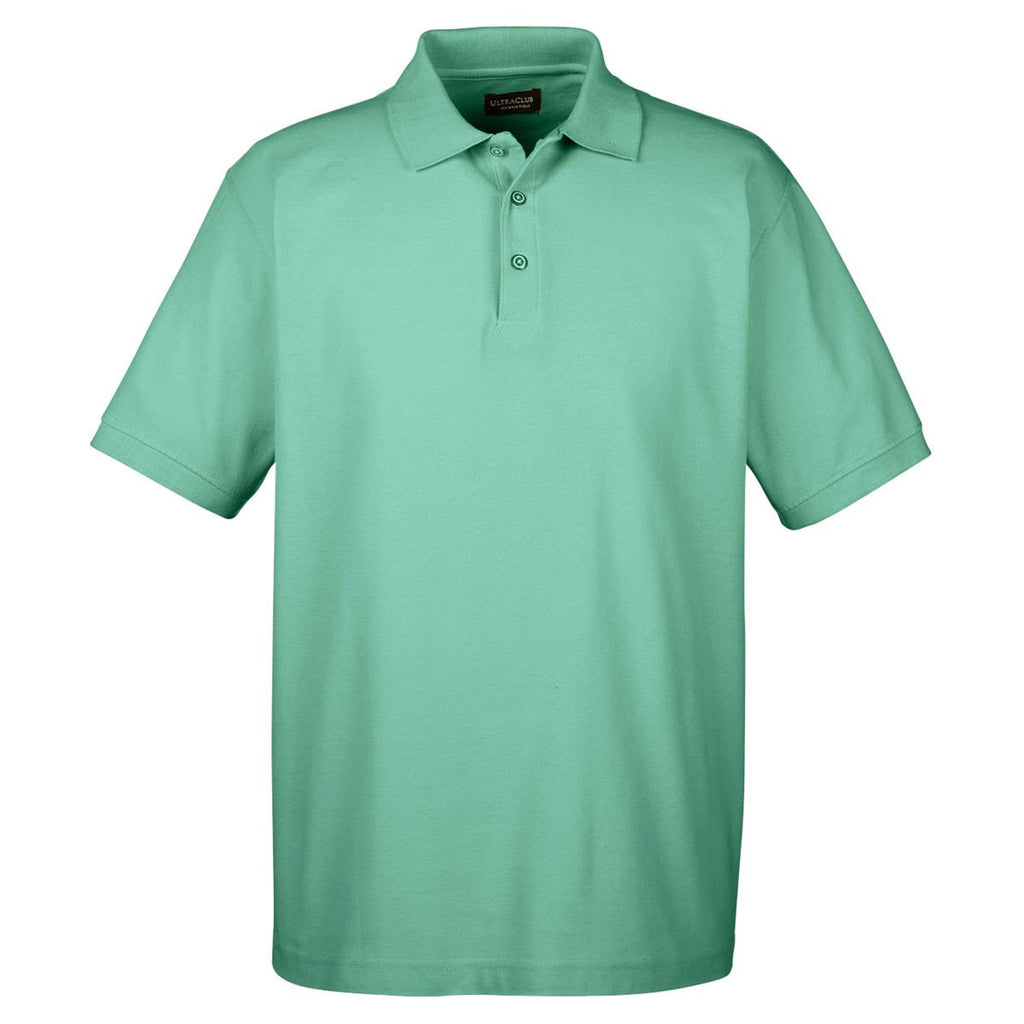 We have a secret we want to share. The UltraClub Men's Leaf Whisper Pique Polo represents the ideal corporate apparel to bring along on business trips. Easy to care for cotton and polyester pique offer the potent one-two punch of high fashion and long lasting durability. The elegant polo features contoured flat-knit collar and cuffs to create a refined look that potential customers notice. Turn the glances at the polo into a powerful marketing tool by adding a custom logo to the large imprint area. Single-needle top stitching at the neck, sleeves, and shoulders reduces the number of stitch marks that diminish the quality of other styles of polos.Corresponding Women's Style: UltraClub Women's Leaf Whisper Pique Polo
