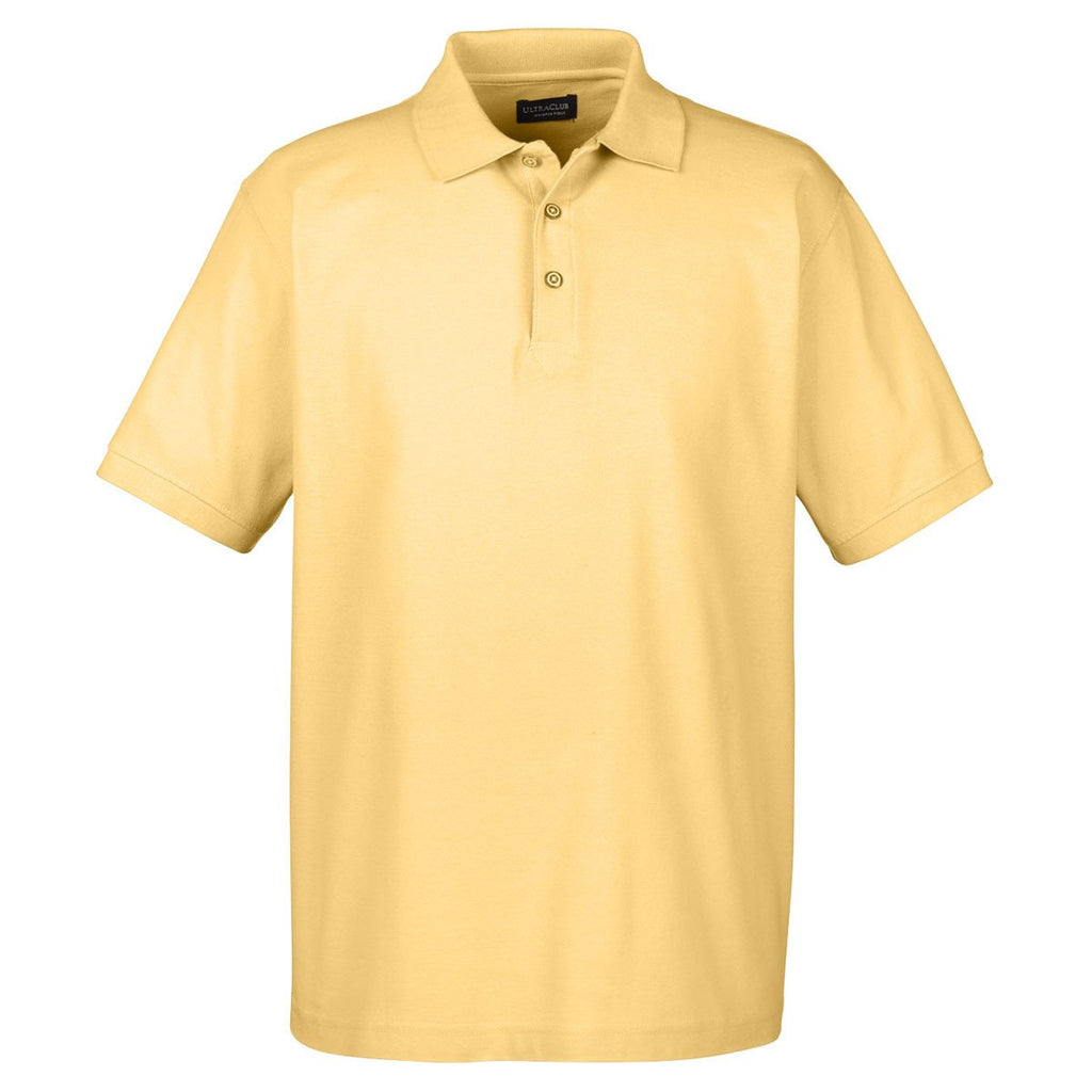 We have a secret we want to share. The UltraClub Men's Yellow Whisper Pique Polo represents the ideal corporate apparel to bring along on business trips. Easy to care for cotton and polyester pique offer the potent one-two punch of high fashion and long lasting durability. The elegant polo features contoured flat-knit collar and cuffs to create a refined look that potential customers notice. Turn the glances at the polo into a powerful marketing tool by adding a custom logo to the large imprint area. Single-needle top stitching at the neck, sleeves, and shoulders reduces the number of stitch marks that diminish the quality of other styles of polos.Corresponding Women's Style: UltraClub Women's Yellow Whisper Pique Polo
