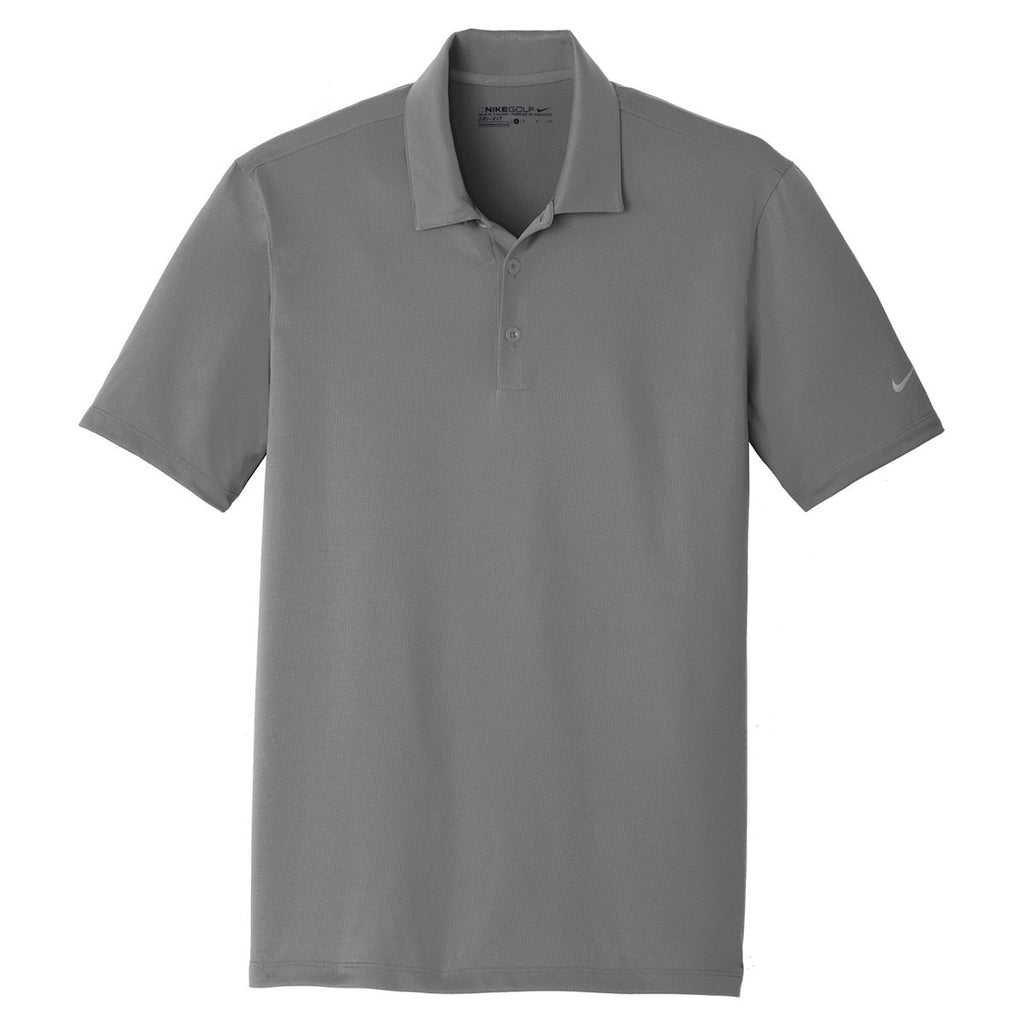 Before the next corporate golf tournament, order the logoed Nike Men's Dark Grey Dri-Fit Legacy Polo to make a fashionable statement that professional peers will notice. Make the attention work for your company by attaching your corporate logo on the large imprint area. Proprietary Dri-FIT technology wicks discomfort away all-day long. The subtle, grid-like texture complements the visually appealing open hem sleeves, self-fabric collar, and dyed-to-match buttons. Wear the versatile polo on the links and afterwards during the awards show. The classic Nike swoosh logo on one side of the chest complements the stylish corporate logo you attached on the other side.