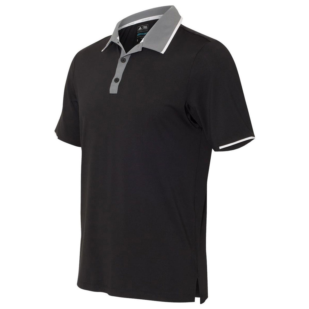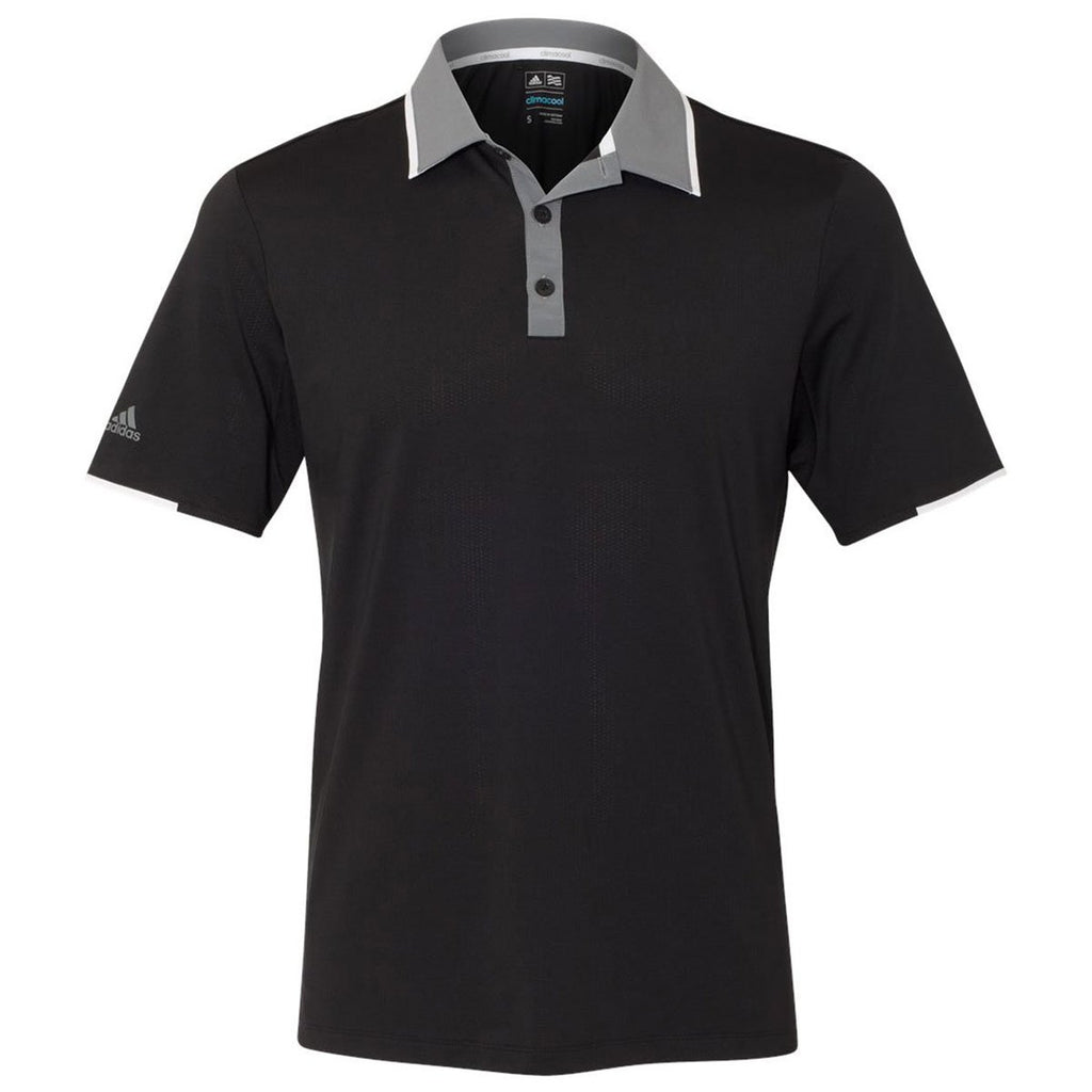 Custom Adidas is the way to go and the Adidas Golf Men's Black/Vista Grey/White Climacool Performance Colorblock Sport Shirt Polo is no exception. Made from a polyester, elastane blend with two color contrast collar, this custom polo shirt will keep you cool when the temperature is turned up. Ideal for a golf event or trade show in the warmer months, this polo can proudly carry your company logo with style and professionalism. The logoed polo can also function as employee apparel to put forth a particular, well-groomed look for your store or office front. The underarm Climacool inserts will make this sport shirt an instant favorite. Place your order today.Highlights