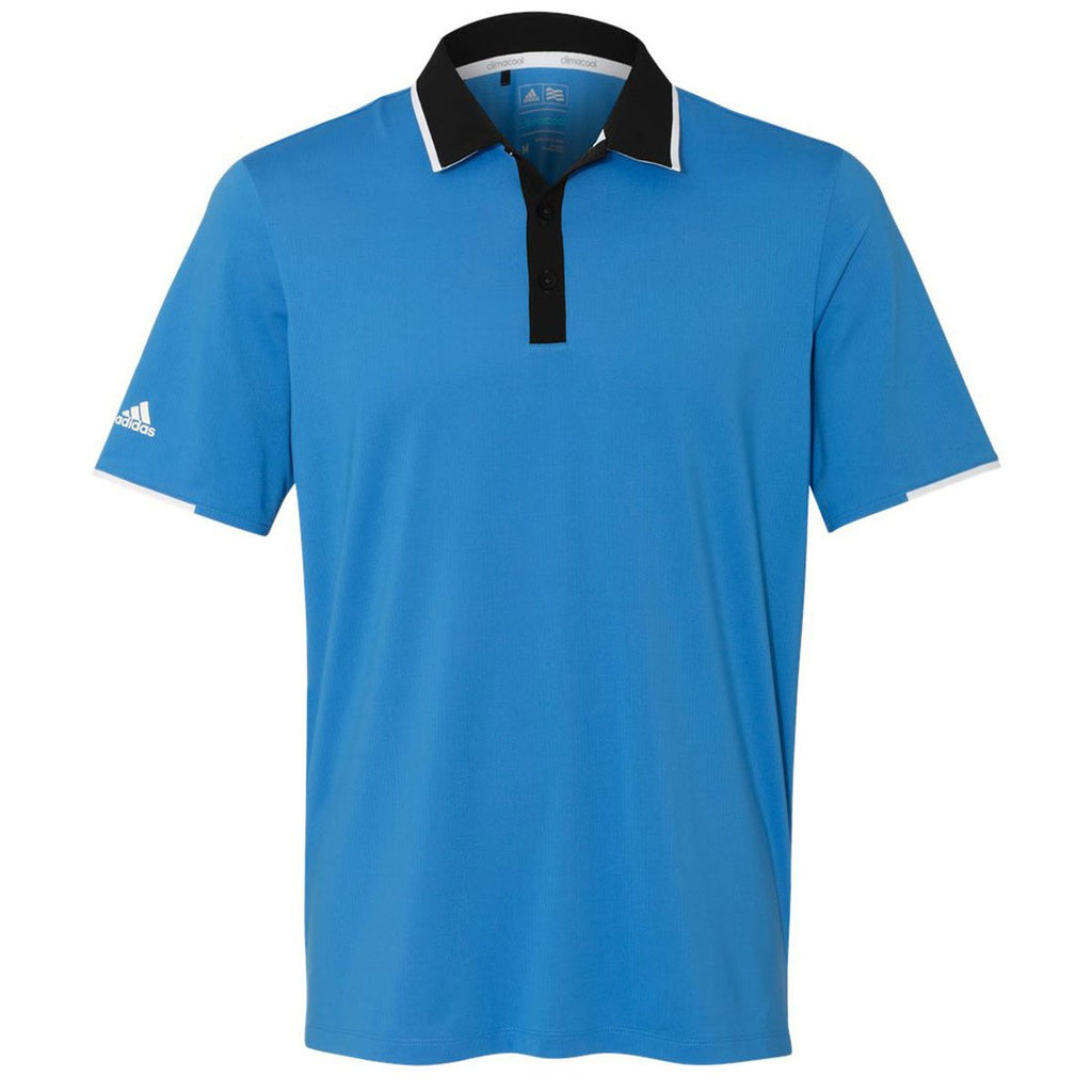 Custom Adidas is the way to go and the Adidas Golf Men's Shock Blue/Black/White Climacool Performance Colorblock Sport Shirt Polo is no exception. Made from a polyester, elastane blend with two color contrast collar, this custom polo shirt will keep you cool when the temperature is turned up. Ideal for a golf event or trade show in the warmer months, this polo can proudly carry your company logo with style and professionalism. The logoed polo can also function as employee apparel to put forth a particular, well-groomed look for your store or office front. The underarm Climacool inserts will make this sport shirt an instant favorite. Place your order today.Highlights