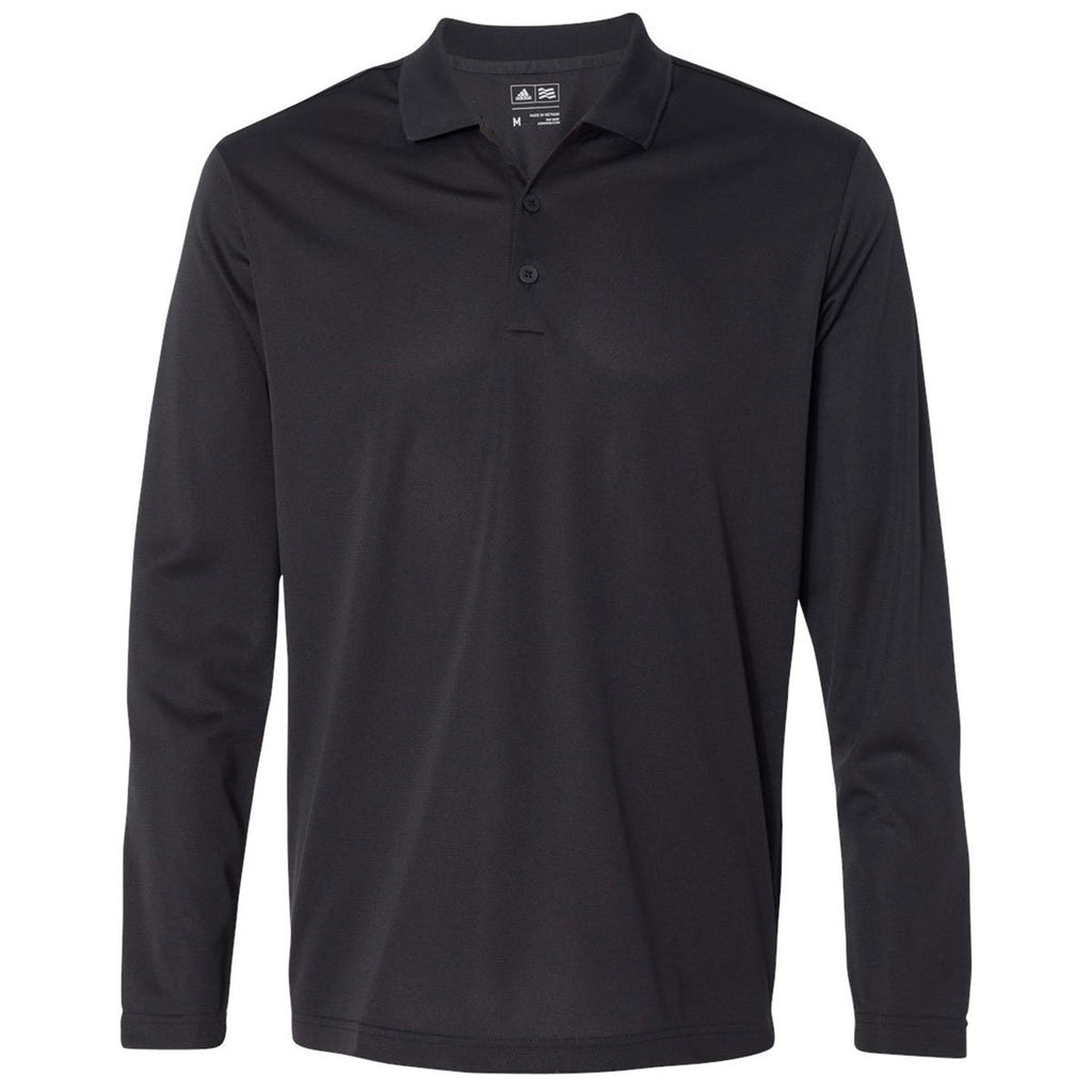 Adidas Golf Men's Black/White Climalite Long Sleeve Sport Shirt is a must have for every man in your life. Perfect for any event you need to attend or as employee apparel when at the office, the custom embroidery sport shirt is 100% polyester with hydrophilic finish and rib knit collar. The 3-button placket and turn back cuffs offers a classic look in a variety of classic colors to meet every need. Add your company logo to the custom Adidas sports shirt and strut your stuff whether at a golf event or trade show. The price is right and the Adidas name demonstrates quality, how many will you order?Highlights