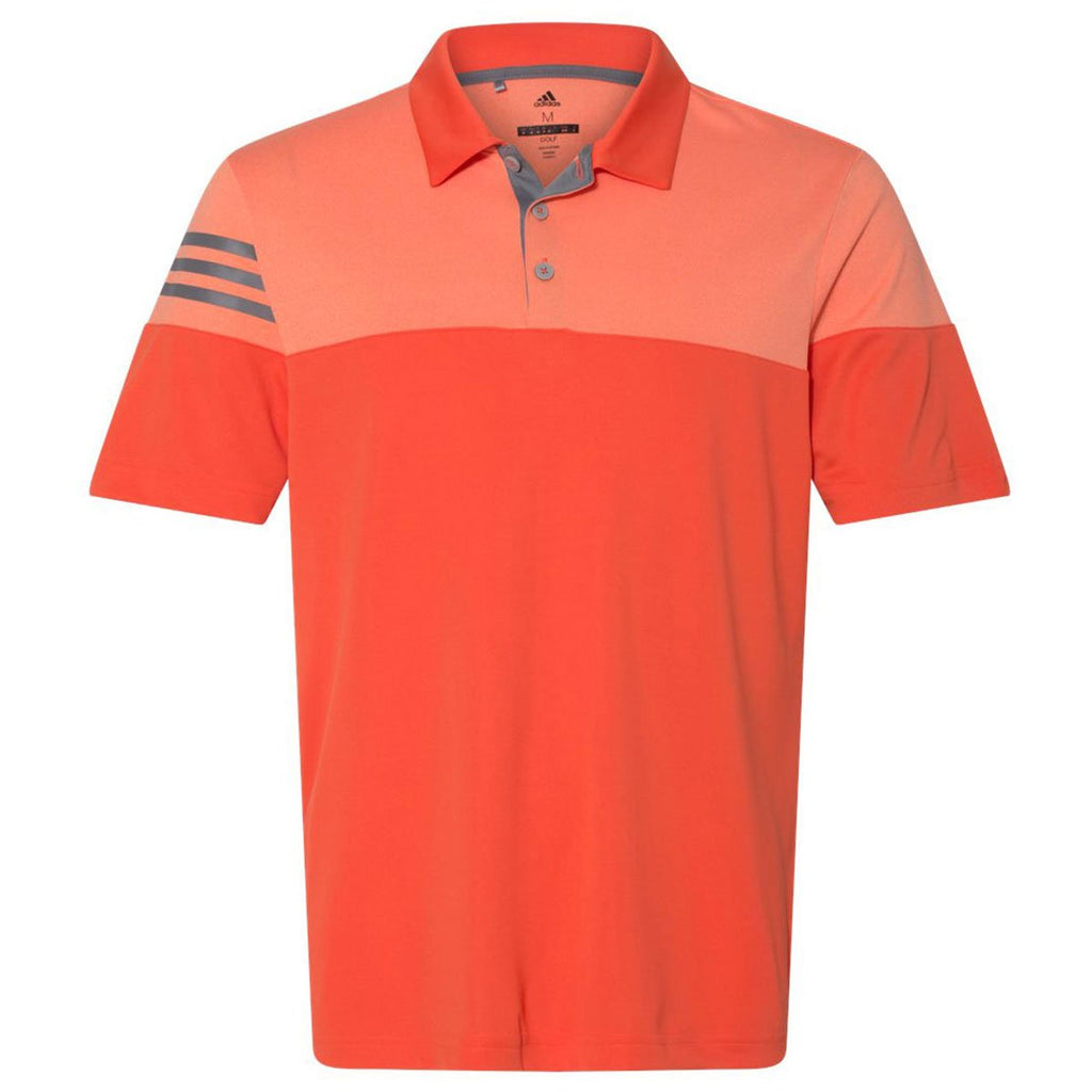 Adidas Golf Men's Blaze Orange/Vista Grey Heather 3-Stripe Block Sport Shirt