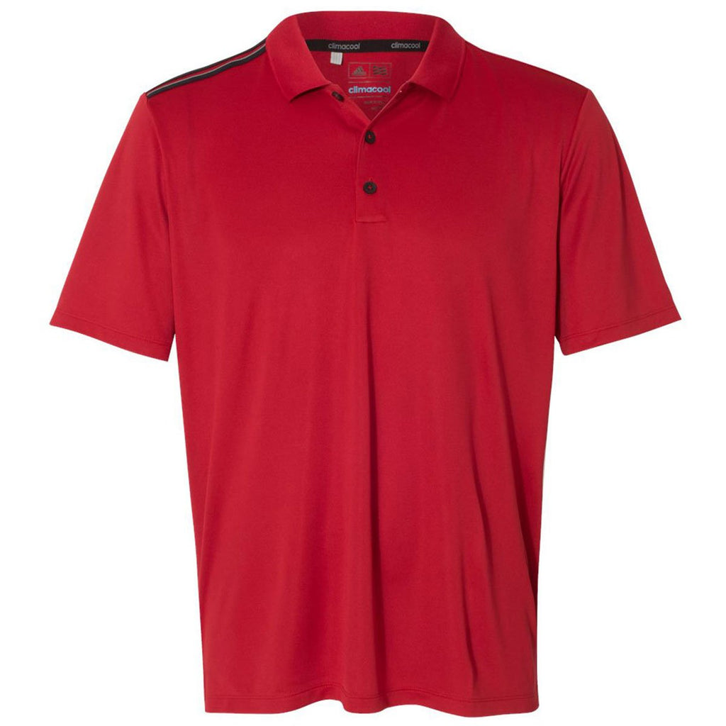 Custom Adidas is the way to go and the Adidas Golf Men's Power Red/Black/Vista Grey Climacool 3-Stripes Shoulder Polo is no exception. Made from 100% polyester with Underarm ClimaCool inserts this custom polo shirt will keep you cool when the temperature is turned up. Ideal for a golf event or trade show in the warmer months, this polo can proudly carry your company logo with style and professionalism. The logoed polo can also function as employee apparel to put forth a particular, well groomed look for your store or office front. The 3-stripe pattern on the shoulder adds just enough extra to help your look stand out. Place your order today!Corresponding Women's Style:Adidas Golf Women's Power Red/Black/Vista Grey Climacool 3-Stripes Shoulder Sport Shirt