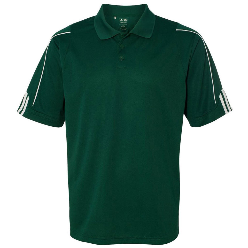 Dress to impress at your golf events with the Adidas Golf Men's Collegiate Green/White Climalite 3-Stripes Cuff Sport Shirt. This custom polo shirt will keep you cool with side vents and open hem sleeves whether you are leading the pack on the greens or presenting at the office. Made of 100% polyester pique hydrophilic finish the 3-stripes on the cuff add character to an already perfect sport shirt. Add your company logo or custom embroidery to use as employee apparel or just to show company affiliation. Choose the color option that works best for your needs and place an order. Adidas demonstrates quality, as will you in wearing this sport shirt.Highlights
