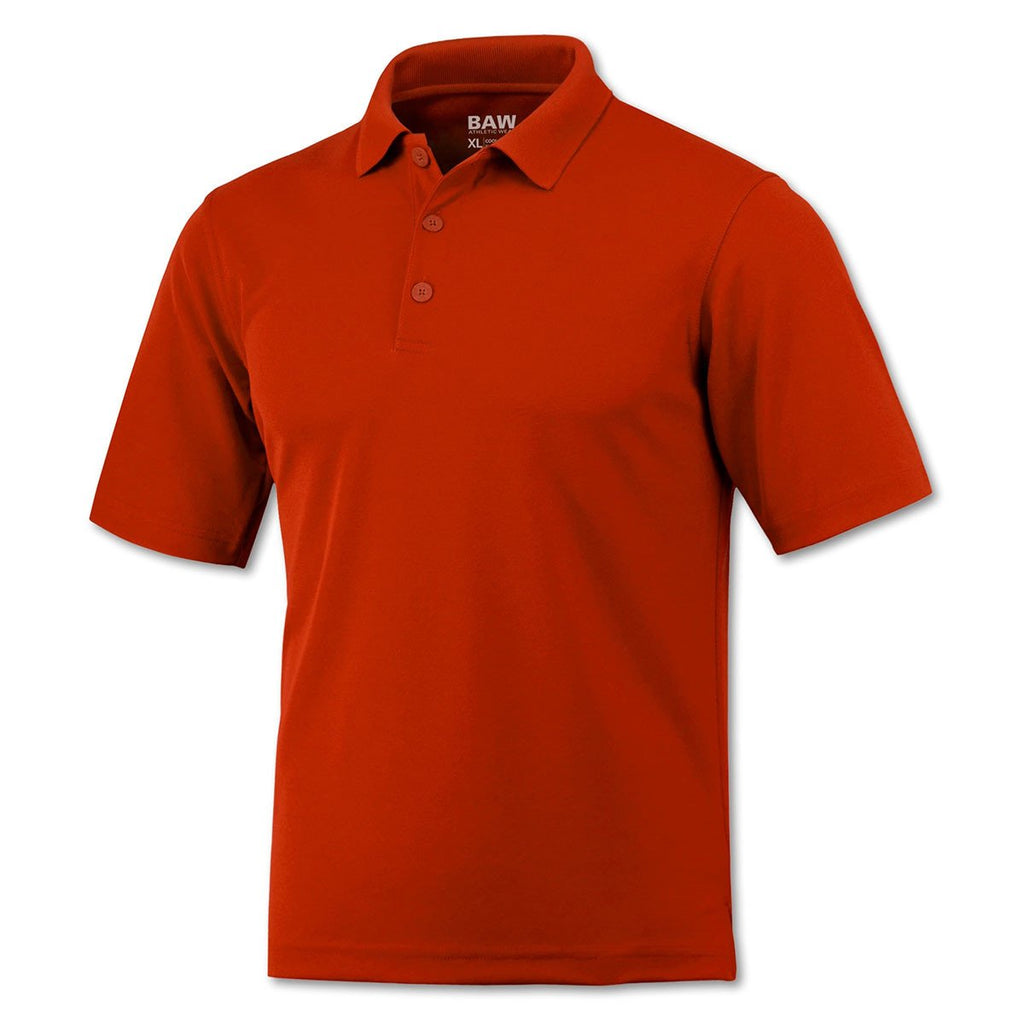 When you want a quality polo to give as incentives or to stock your wearables inventory choose one that is cool and comfortable. The BAW Men's Orange Solid Cool Tek Polo is made from polyester Cool Tek and the material is moisture managing and feels great against the body. Not only does it feel good, your customer logo will look prominent on the front. Anyone receiving this shirt will feel proud that your name is on the quality polo. Everything about it says excellence. From the color choices to the sizes from S to 5X, this is a garment that will be worn quite often.Corresponding Women's Style: BAW Women's Orange Solid Cool Tek Polo