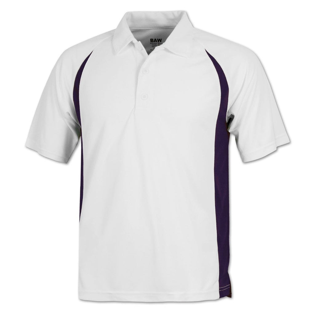 BAW Men's White/Purple White Colorblock Body Cool Tek Polo