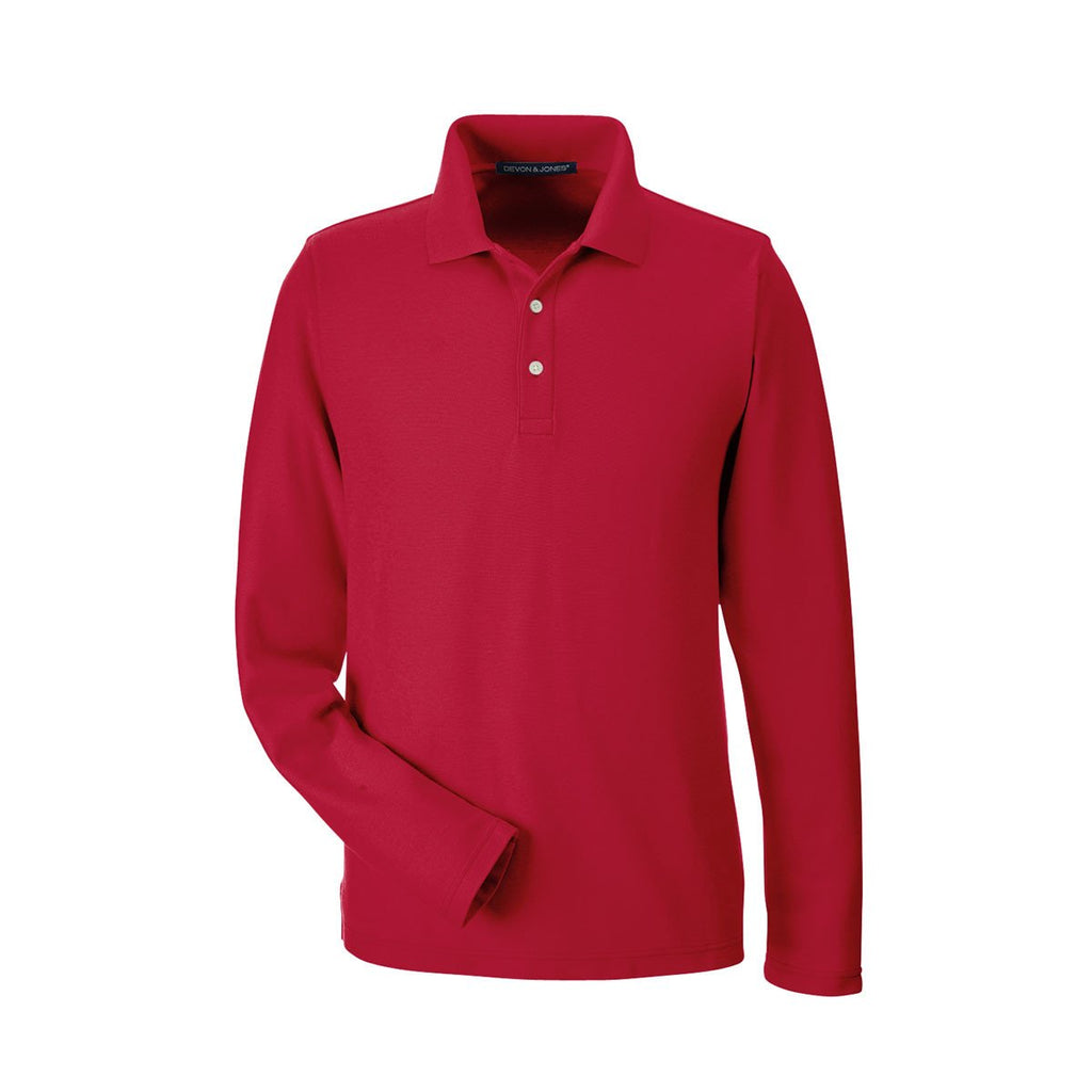 Devon & Jones Men's Red Drytec 20 Performance Long-Sleeve Polo